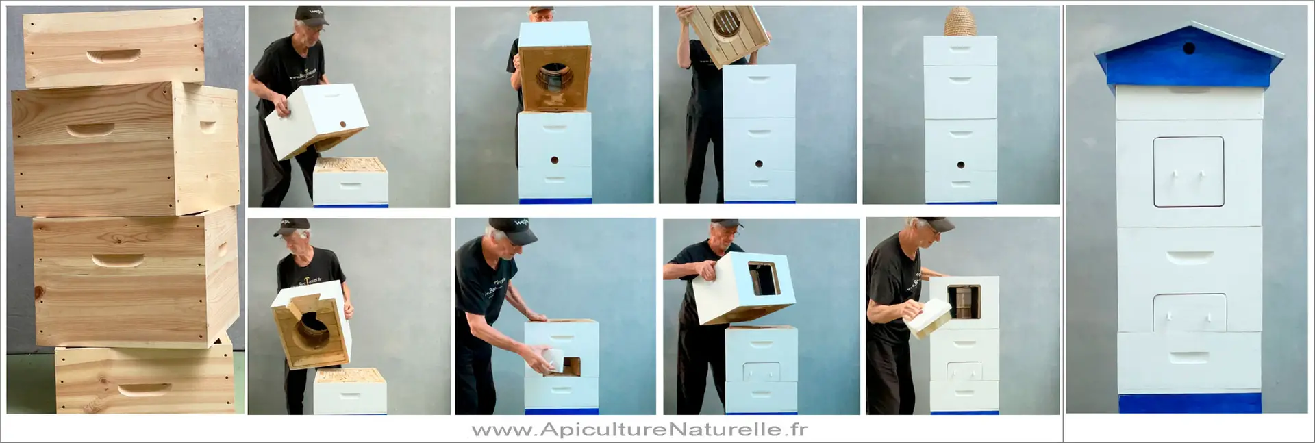 Les différentes ruches que nous présentons sur notre rucher école sont conçues selon cette philosophie !