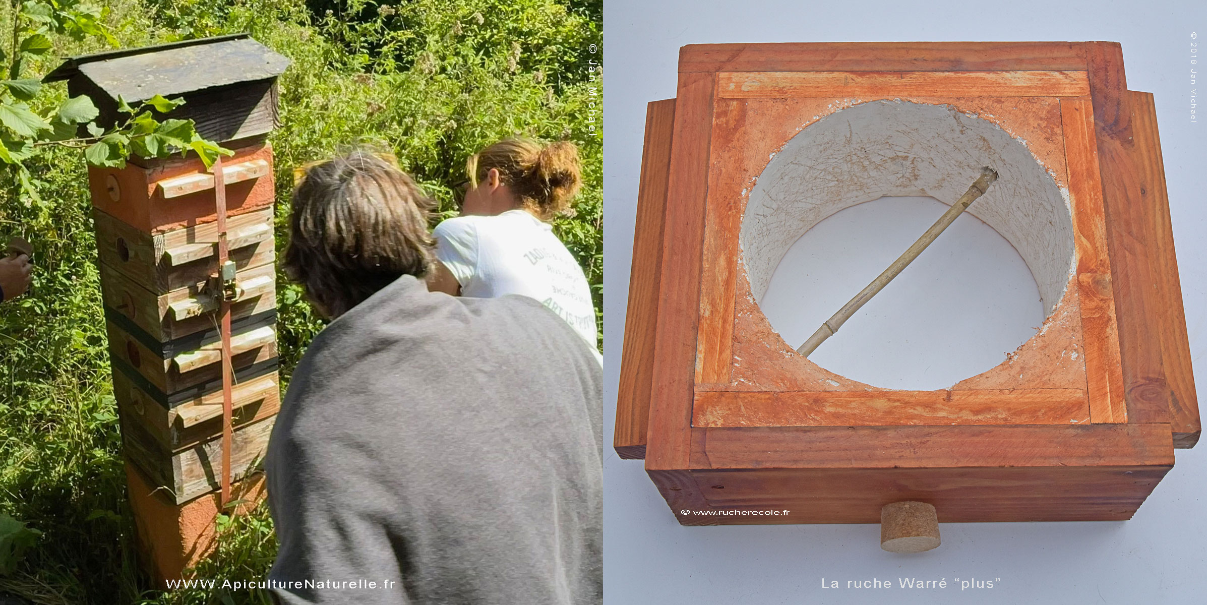 L’une des ruches Warré, partiellement fabriquée à partir de panneaux de liège et dotée d’un intérieur cylindrique en plâtre naturel, reste l’une des attractions de nos cours sur l’apiculture naturelle.